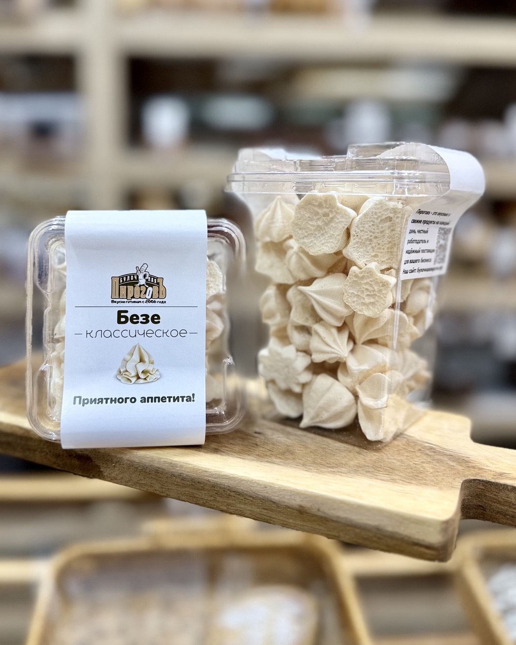 Традиционный французский десерт по домашнему рецепту. В процессе производства используются только натуральные ингредиенты без ароматизаторов и консервантов. Безе изготавливается вручную из яичного белка с сахарной пудрой.